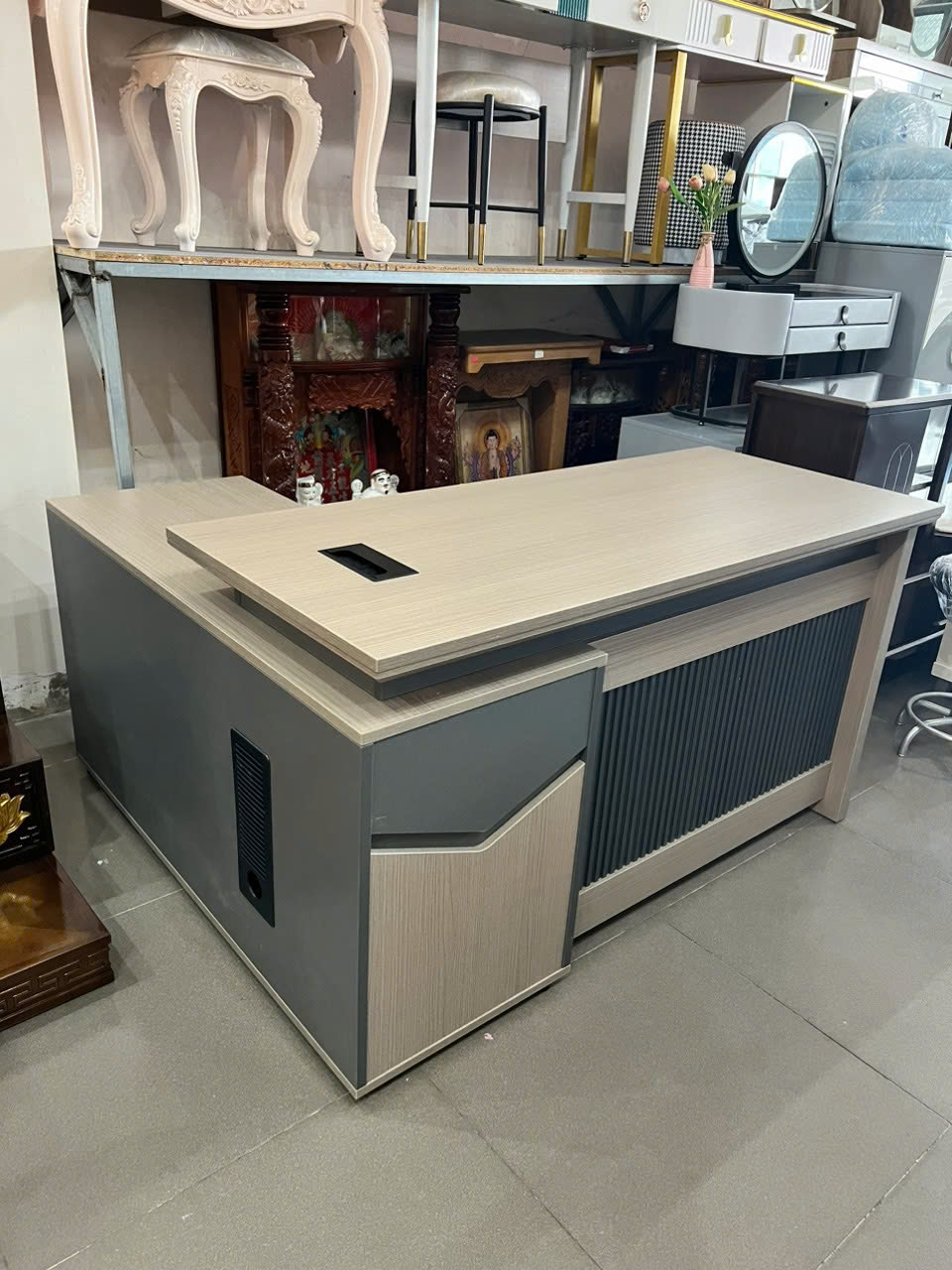| Tính Năng | Bộ gồm : 01 Bàn chính + 01 góc chữ L (Có thể đổi góc sang Trái/Phải tuỳ ý) |