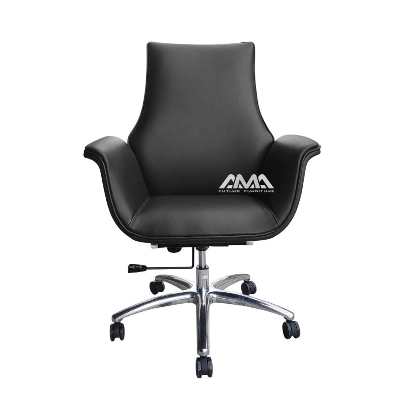 | Chất Liệu | Ghế lưng trung, tay ghế uốn cong mềm mại, nệm bọc Da CN, mâm 2 cần, chân nhôm, có bánh xe |